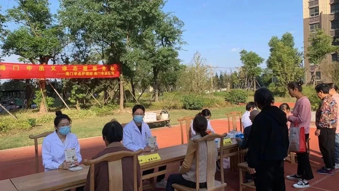 重陽日,海門申丞護(hù)理院/海門申丞醫(yī)院的醫(yī)護(hù)人員將愛送到證大社區(qū),為小區(qū)居民進(jìn)行測(cè)血糖、量血壓、健康咨詢等義診活動(dòng),得到了小區(qū)居民的熱烈歡迎。