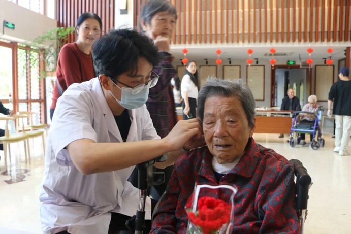 節(jié)日里,健康是最大的祝福。中醫(yī)師為長者們貼上了耳穴貼,通過傳統(tǒng)中醫(yī)幫助調(diào)節(jié)身體。小小的耳穴貼,承載著護(hù)理院對長者們無微不至的關(guān)懷。