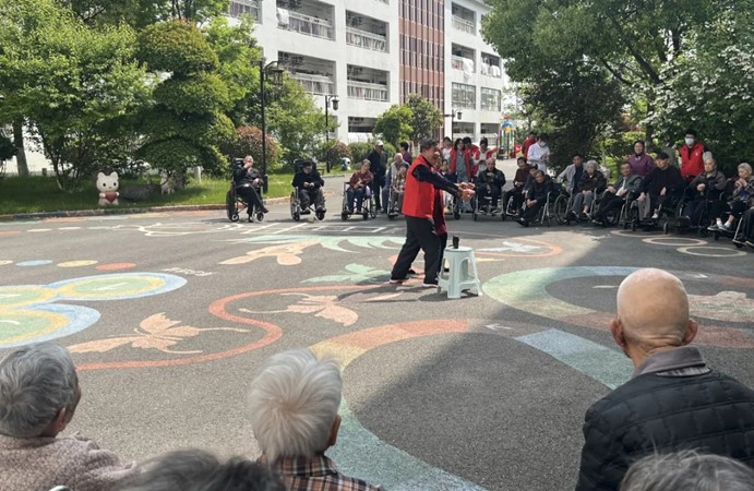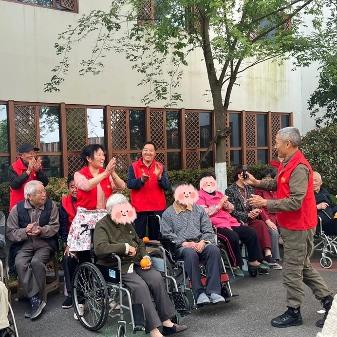 除了物資捐贈,志愿者們還主動推著老人們散步,陪他們聊天、拉家常。春日暖陽下,護理院的院子里充滿了歡聲笑語。長者們分享自己的人生故事,志愿者們陪伴老人們唱歌、做游戲,共度歡樂時光,溫情的互動讓這個上午格外溫馨。