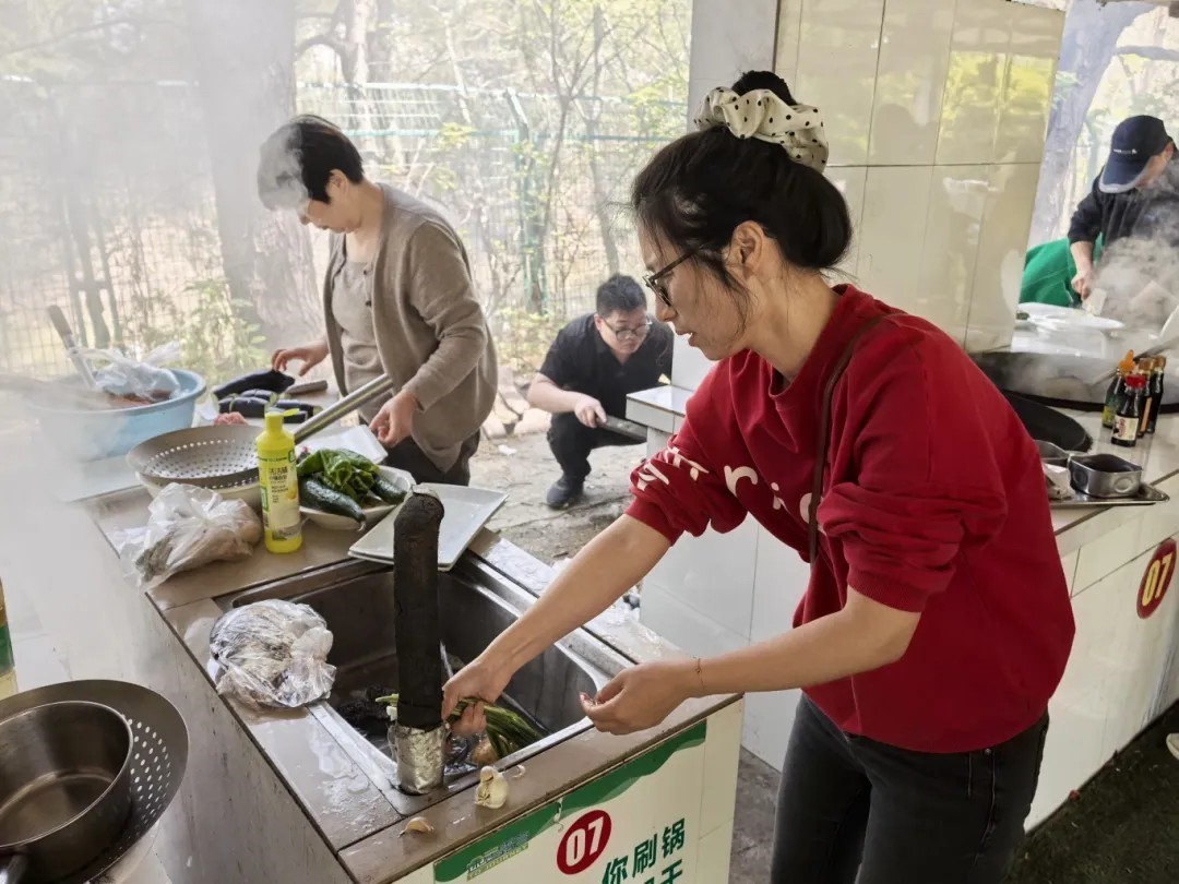 臨近午餐,大家一起圍在大鍋灶邊上,共同準備一頓豐盛的午餐。自己生火煮飯,大家分工明確,和諧友愛,只有歡聲笑語和飯菜香,鍋灶飄起的煙火,讓大家感受到了大家庭的溫暖。