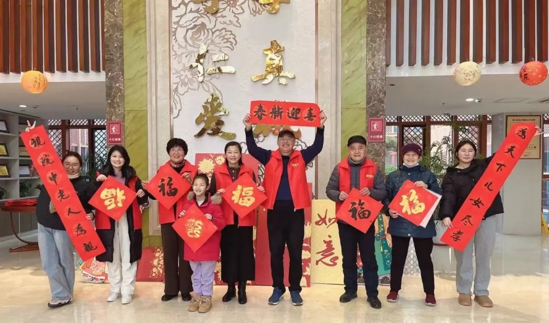 過年送福字、貼春聯(lián),紅紅的紙,濃濃的墨,滿滿的年味,這是屬于中國人獨有的迎春方式。海門申丞護理院特邀請老年大學和喜悅志愿者團隊來院為在院長者送福字、貼春聯(lián)。